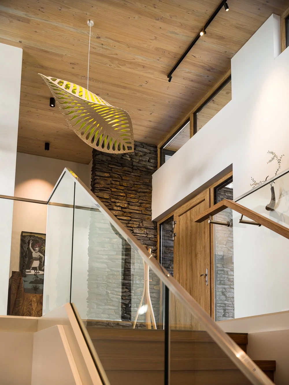 The high, voluminous ceilings create a luxurious sense of space, yet the home is still cost-effective to heat and cool, thanks to the WarmthNZ central heating, Moisture Master ventilation systems and generously thick airtight walls. Fully insulated foundations use Firth Ecomix concrete with 40% fly-ash resulting in 40% less carbon. Crafted from CLT (cross laminated timber) panels, the ceilings form the underside of the SealCo warm roof with continuous insulation, combining structural integrity with aesthetic appeal. The Japandi design embraces natural materials throughout, as well as retaining as much established landscaping and trees as possible, helping to enhance the occupants' mental well-being through biophilic design principles and the Japanese practice of ‘shinrin-yoku.’