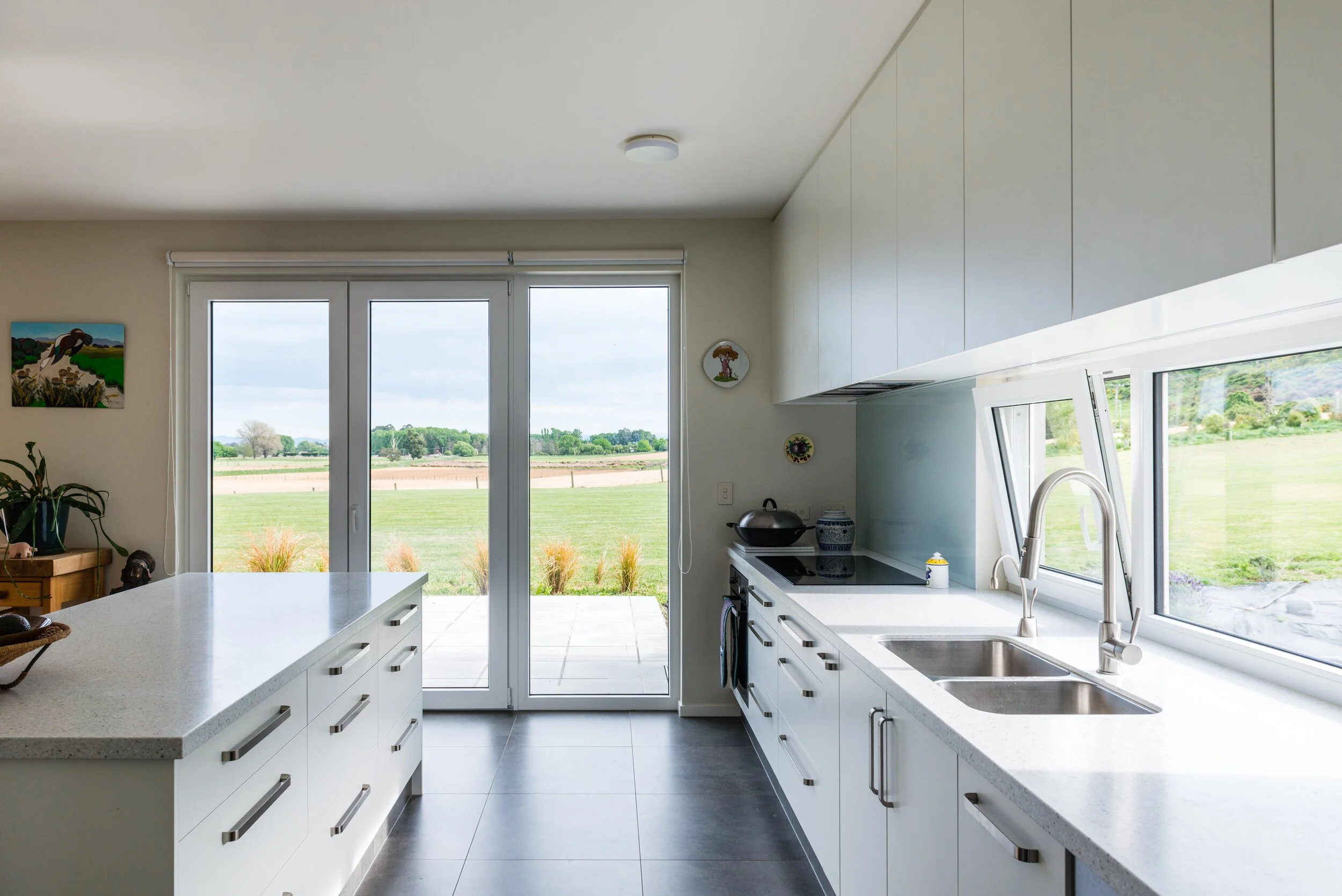 Nestled in the Hoon Hay Valley with inspiring views to the north/west the home boasts a completely insulated foundation by MAXRAFT. Hydronic underfloor heating by Warmth NZ is the heat source run from air to water heat pumps which also runs the hot water cylinder. The rest of the thermal envelope was made up of 140mm framing with R4.1 Terra Lana wool insulation in the walls, NK Upvc windows with tilt and turn European hardware and R5 insulation in the ceiling.